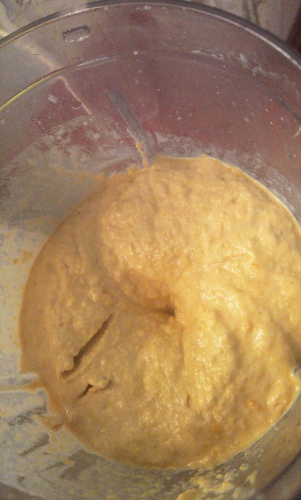 vous obtenais un houmous assez compact certain l’aime comme cela si la texture vous convient passer à la 3éme partie directement sinon rajoutait le reste de l’eau afin d’obtenir un houmous crémeux et remixer 15secs