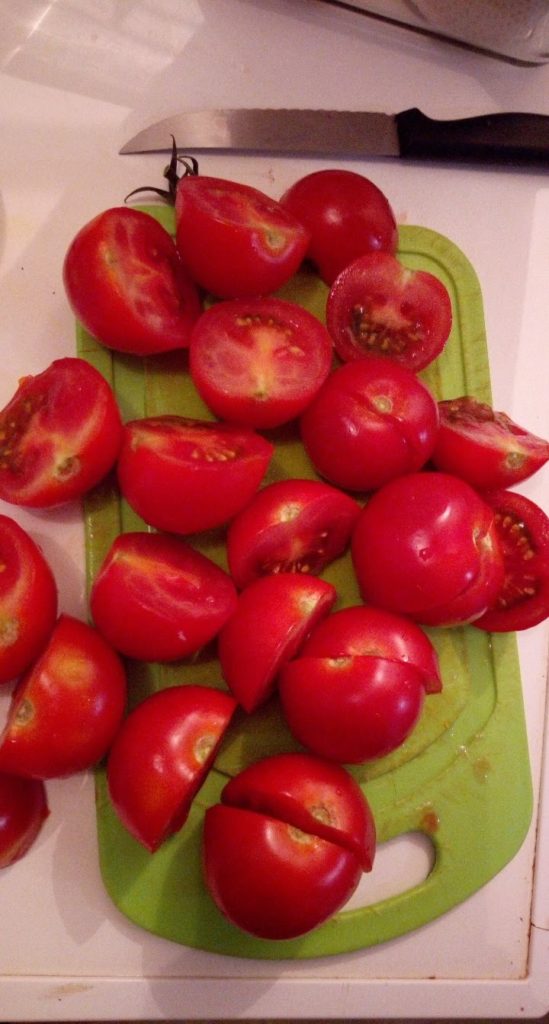 2) en attendant (sans vous éloigner de votre caramel) coupé vos tomates en 2